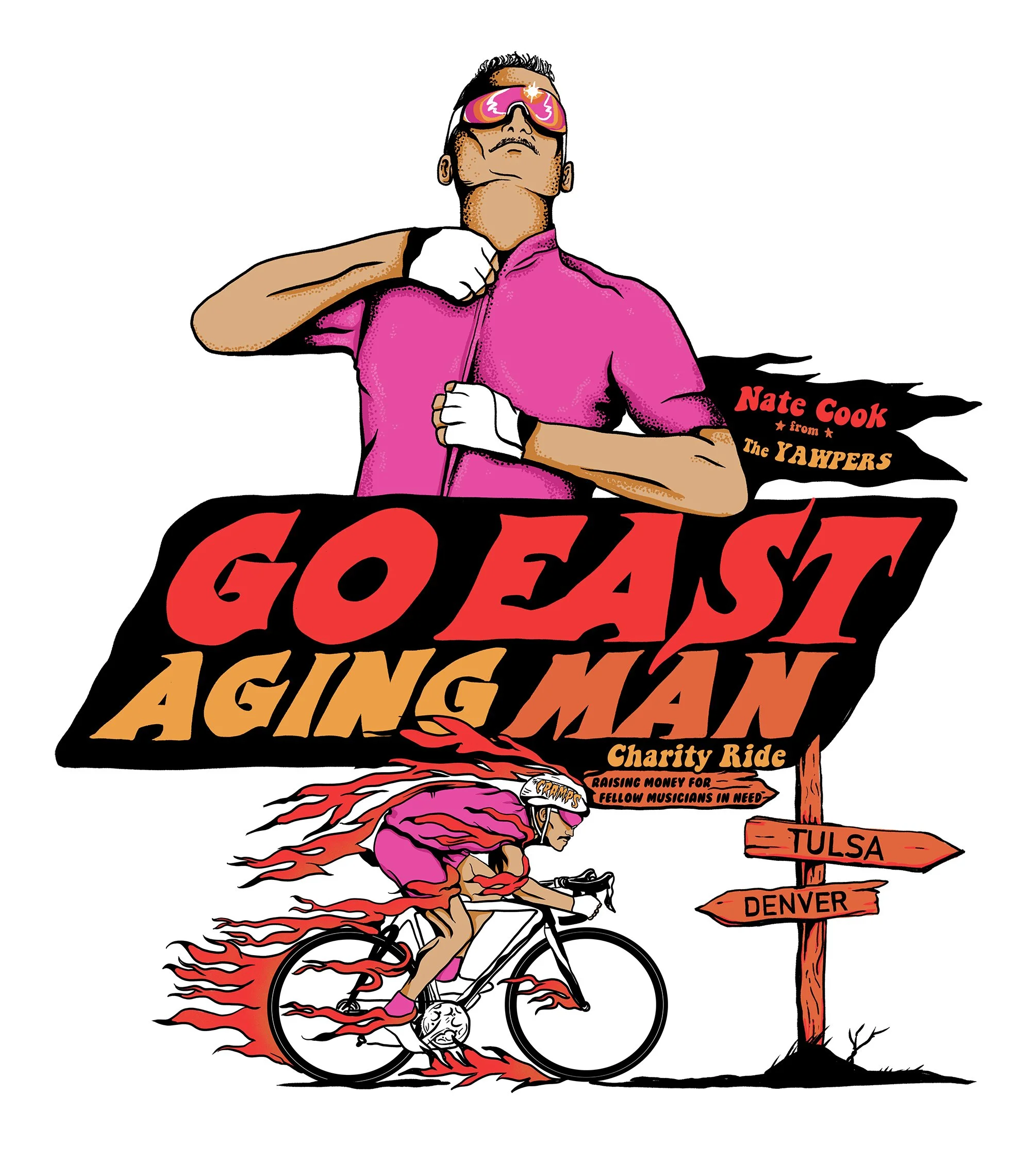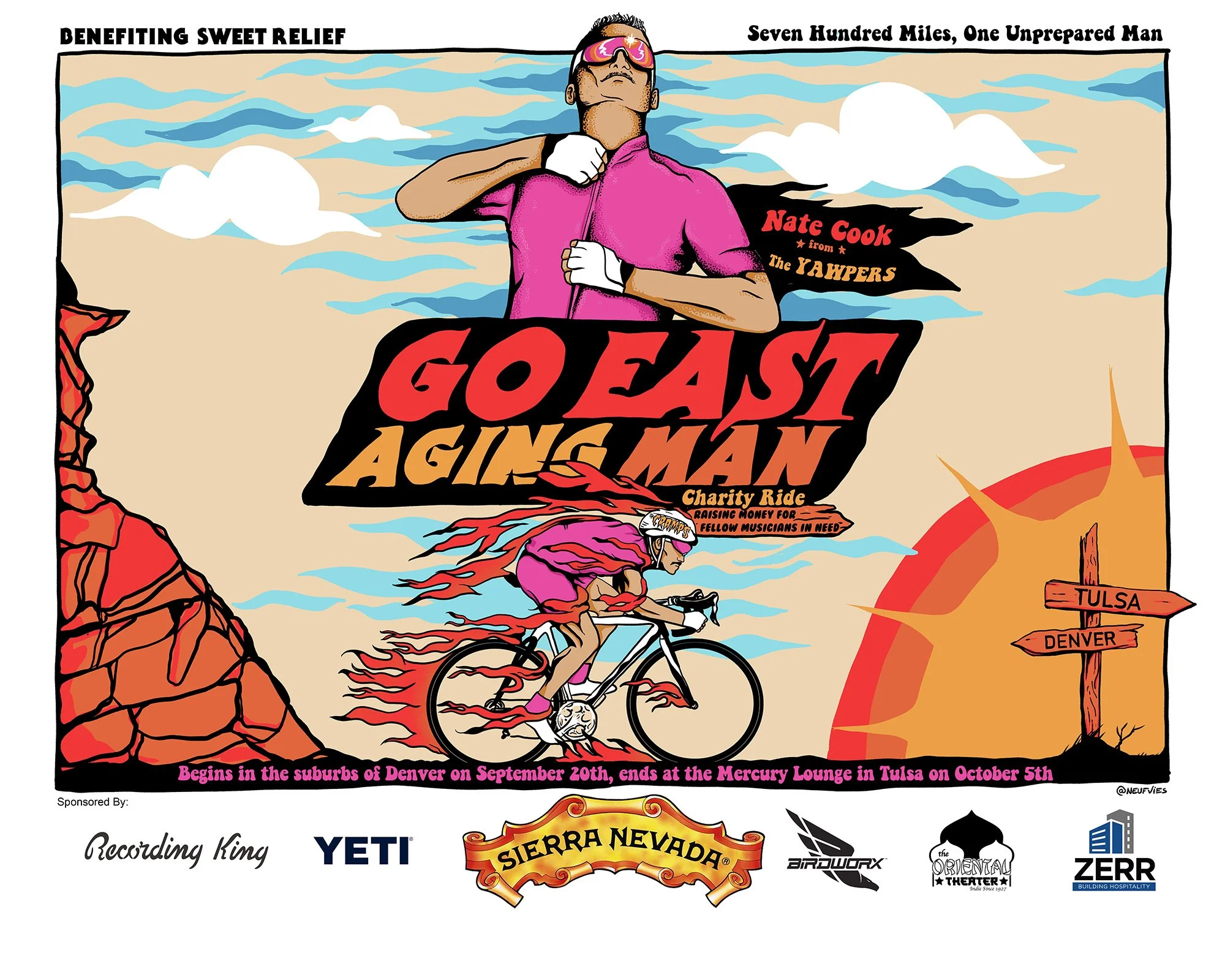Go West Aging ManCreating poster and identity for Nate Cook’s benefit bike ride, from Denver to Tulsa.